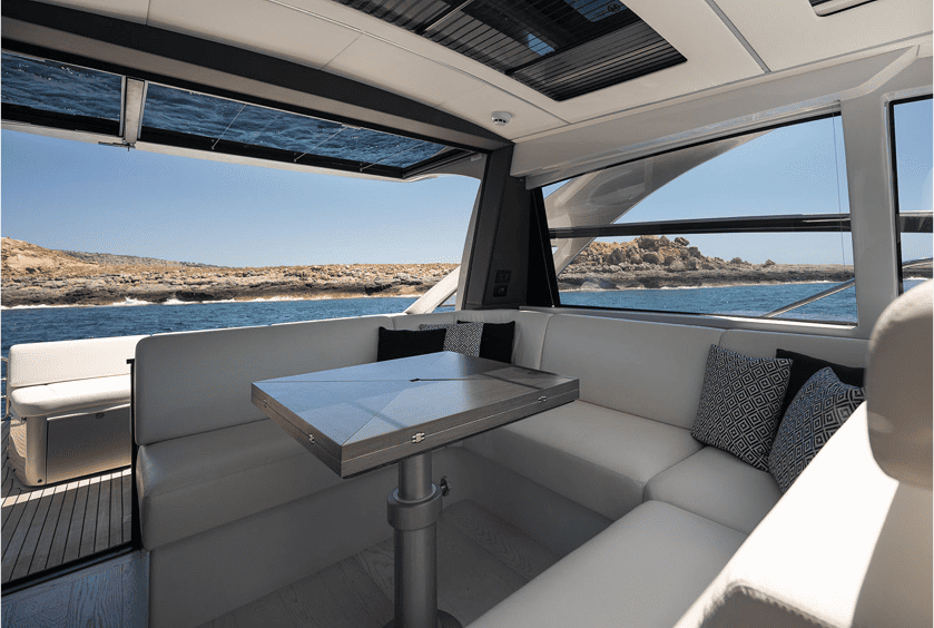 Descubre el Pershing 56, su mejor opción para una emocionante y elegante experiencia náutica en Mallorca. Esta embarcación de 17 metros (56 pies) está diseñada para quienes buscan la combinación perfecta de velocidad, lujo y aventuras a medida en el agua. Con velocidades máximas superiores a 36 nudos y un sistema de propulsión de vanguardia, está diseñado para una navegación rápida y suave, ideal para llegar a destinos emblemáticos como Ibiza, Formentera o Menorca con un estilo inigualable. Su elegante diseño italiano sin duda llamará la atención, mientras que el techo rígido retráctil y el amplio techo solar ofrecen una emocionante experiencia al aire libre o una agradable sombra cuando la necesite. El Pershing 56 puede alojar cómodamente hasta 10 huéspedes en charters de un día y tiene capacidad para 4 personas, lo que lo hace perfecto tanto para animadas excursiones de un día como para estancias íntimas.