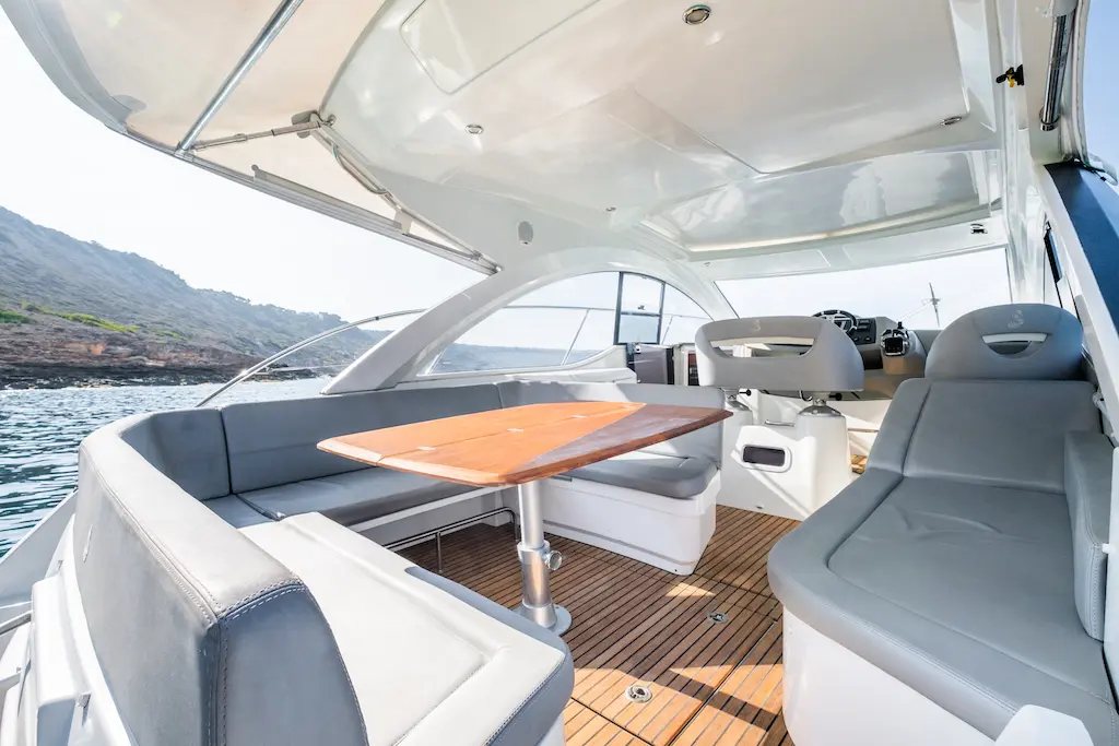 The Sunseeker Portofino 46 is a luxury sports yacht that combines elegance and performance in a sleek and modern design. With a length of 14.75 meters, it offers comfortable and sophisticated space.