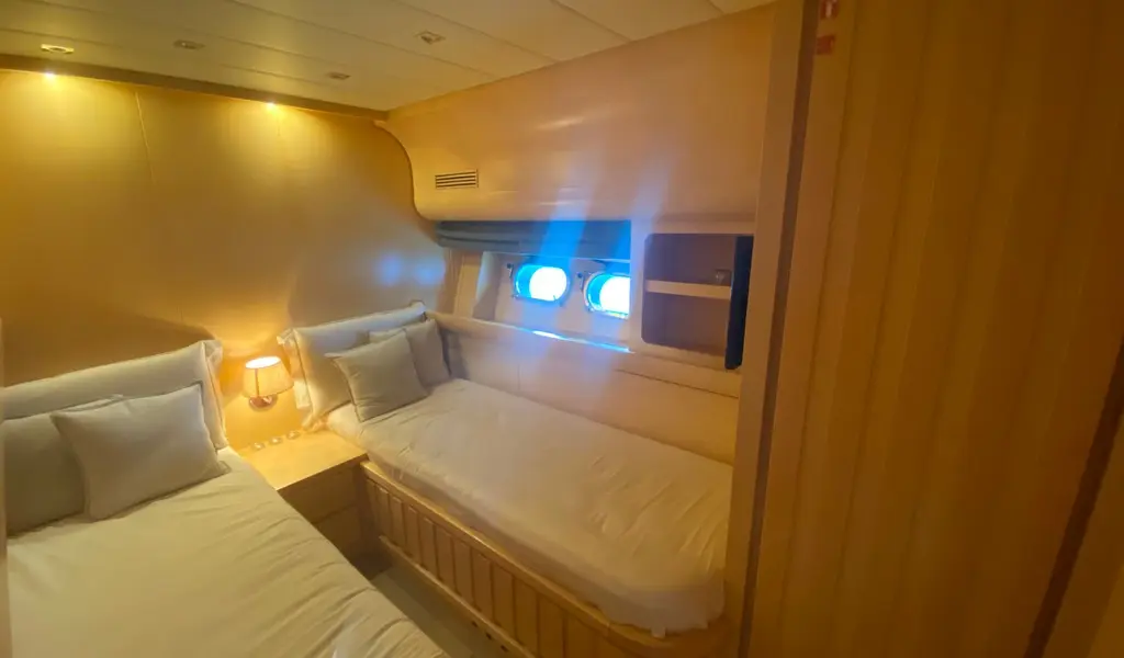 The Leopard 90 is a luxury yacht that combines sophisticated design with exceptional performance, perfect for those seeking an exclusive sailing experience. With a length of 27 meters, this elegant yacht offers a spacious and comfortable environment, with the capacity to accommodate up to 8 passengers in 4 luxuriously equipped cabins. Equipped with powerful engines, the Leopard 90 ensures fast and stable navigation, ideal for exploring the waters with style and efficiency. Its generous outdoor areas are designed for maximum enjoyment of the sun and sea, while the interiors provide an atmosphere of luxury and comfort. Book your voyage today and experience the pleasure of sailing aboard the Leopard 90, where every detail is designed to offer an unforgettable rental experience.