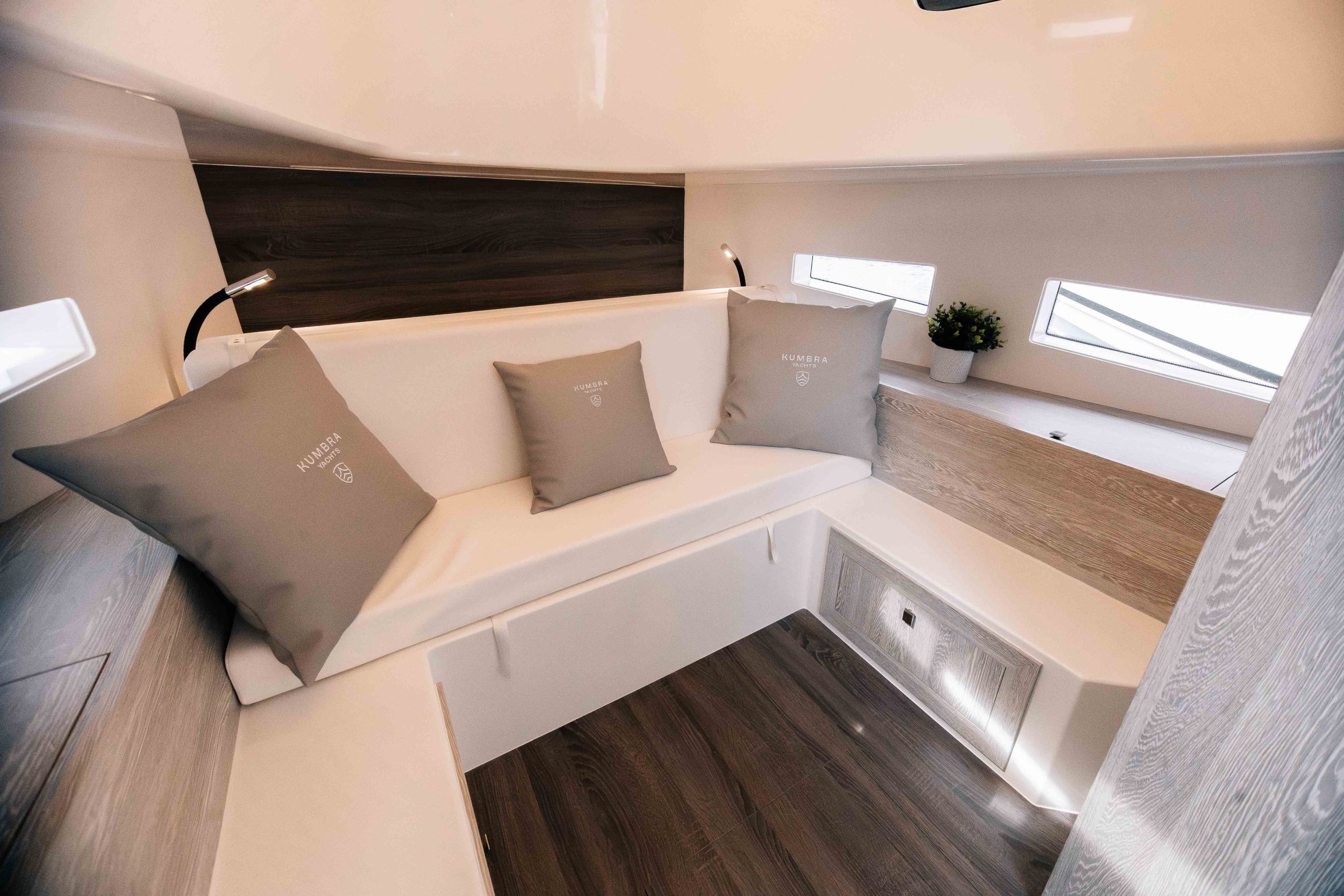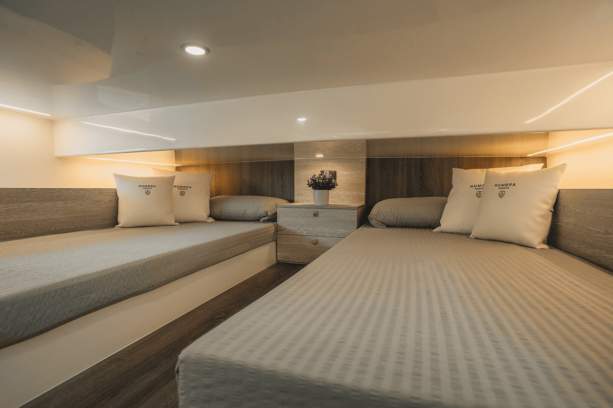 Discover the Kumbra 34, your perfect gateway to exploring the breathtaking beauty of Mallorca and the Balearic Islands. This sleek, modern day yacht, measuring 10 meters (35 feet), is designed for both thrill-seekers and leisure lovers, boasting top speeds of up to 45 knots and a dual engine setup for smooth cruising and quick acceleration. With a maximum capacity of 12 guests and sleeping space for 4, it’s ideal for unforgettable family and friend excursions. Its shallow draft allows access to hidden beaches and quiet coves, ensuring an exclusive and intimate experience.