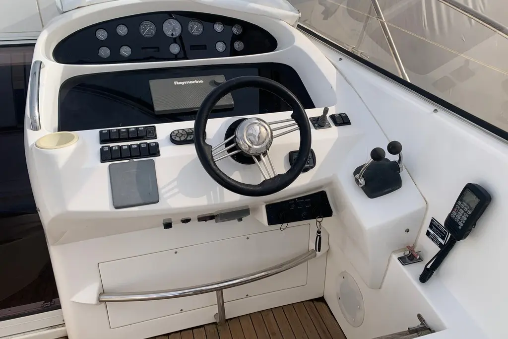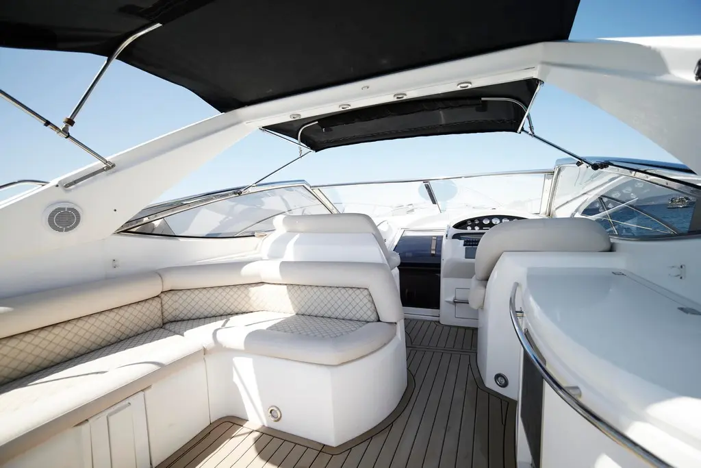 The Sunseeker Portofino 46 is a luxury sports yacht that combines elegance and performance in a sleek and modern design. With a length of 14.75 meters, it offers comfortable and sophisticated space for up to 4 passengers in 2 luxuriously equipped cabins. Powered by powerful engines, the Portofino 46 ensures agile and efficient navigation. Its spacious outdoor areas are designed for maximum enjoyment of the sun and sea, while the interiors provide comfort and style, making every voyage a luxurious and unforgettable experience.